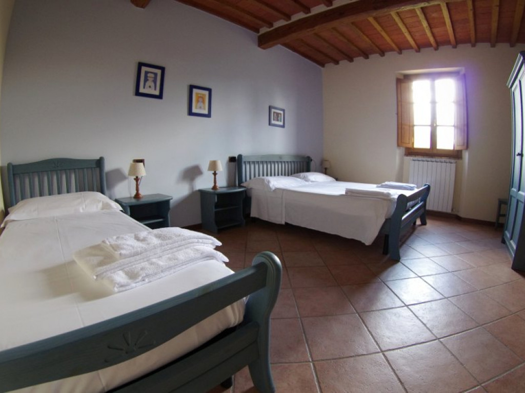 Farm Holiday il Palazzo Residence In the Touscany's hills, deep in Chianti Arezzo Territory, where The Arno Valley meet tha Ambra vally, that's acroos by de road to Siena, Crete senesi, and Orcia Valley. Deep in the Tunscany's hearts. Typical country house from the restoration of an ancient farmhouse a small residential group comprising just 9 apartments for holiday purposes has recently been created and is set in 44 ha of grounds delimited by a small forest at the bottom of the Arno valley; in the great garden ours pool, barbecue, chairs and table; around the silent and the green. Just 3.7 km away the village of Levane (various shops), 8 km Montevarchi (railway station from where in abt. 35 minutes you can reach Florence’s central station which itself is just a few hundred metres from the cathedral), 25 km Arezzo (an important Medieval city and which is also renowned on account of its artisan industry in crafting gold), abt. 40 km from the area of Pratomagno (Poppi, Chiusi della Verna, Bibbiena, etc.).Within a 30 km radius the most exclusive areas of the famous Chianti Classico full of prestigious agricultural estates and famous villages such as Radda, Gaiole, Greve and the Castle of Brolio. Extensive views over the hills and the forest bordering onto the Arno river and which you can reach along signed and pleasant pathways and which continue along through an interesting and protected area.