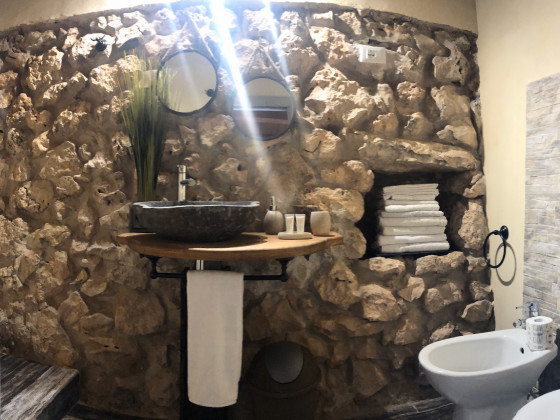 The company covers about 7 hectares on the territory of Noto, UNESCO world heritage and city of Baroque and is far about 16 km from Syracuse. It rises on the Necropolis of Cozzo Guardiole. The structure Cozzo Guardiole - Mundus Terrae is situated on a rocky hill of modest height, from which you can enjoy a wonderful panorama. the farm is the fruit of a renovation of old baand stables ans is a fully built with the old system of stone walls. The land is flanked by the Walloon Cugno Wolf a rich Mediterranean vegetation, and many plants such as Thyme, Sage, Capers, Borage, Nettle, etc ... are used in the kitchen. Agricultural activity is geared mainly to vegetables, olives and other fruit trees. The company is crossed by paths that allow you to walk and admire not only the beautiful landscape, but also the Necropolis Siculus Byzantine structures. The necropolis consists of a complex monumental sepolcrale formed by a large number of rooms. The catacomb is formed by a grand main dormitory with burial in tombs "centrole canopy" surely destined to famous people. Also interesting during your spring excursions will be to admire and photograph the beautiful and rare wild orchids of various species protected dwarfs present only in few places in Italy. The company has 3 rooms with bathroom and air conditioning, for a total of 10 beds. There is also a play area for children and a swimming pool. The restaurant service goes from simple snacks with platters of cheese and salami, accompanied by bruschetta and salad, a more elaborate menu, including seafood.