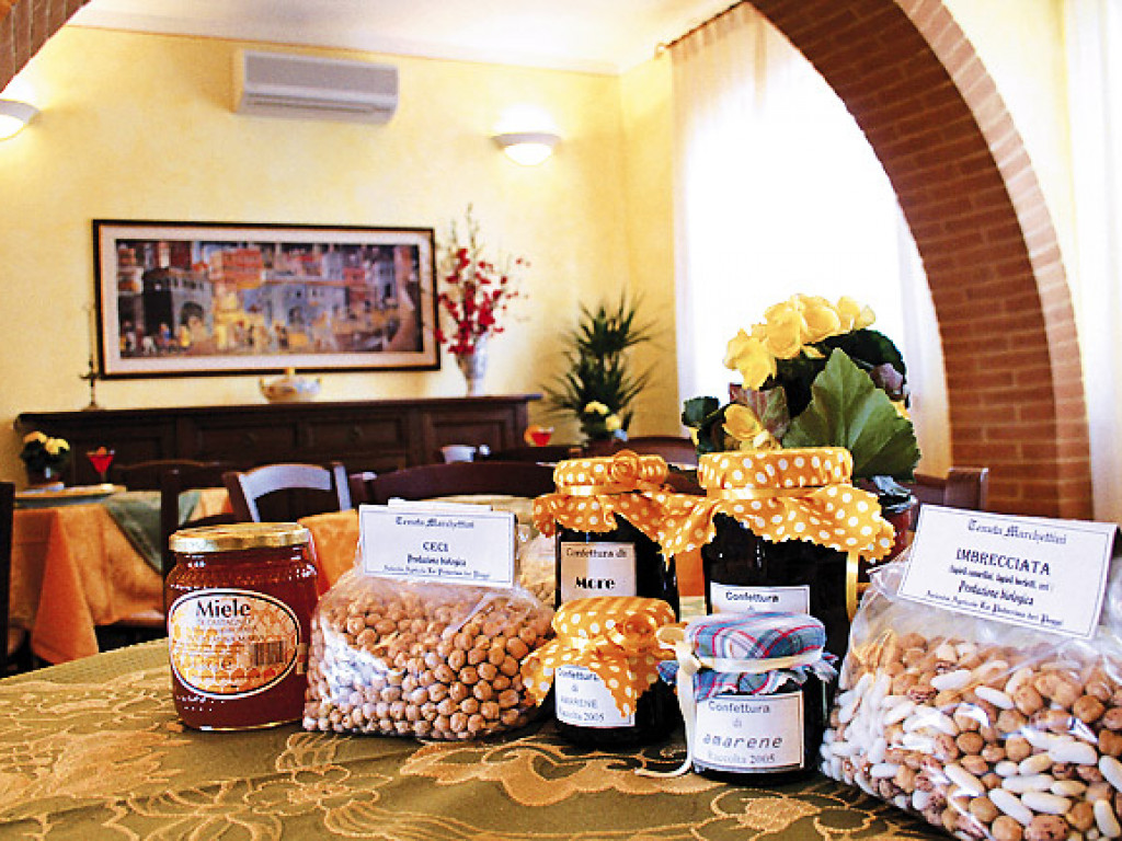 Durante la estancia se pueden degustar los vinos producidos en la granja y el excelente aceite de oliva. Se puede también probar los productos típicos de Umbría y Toscana, como el queso, los embutidos y la carne.
