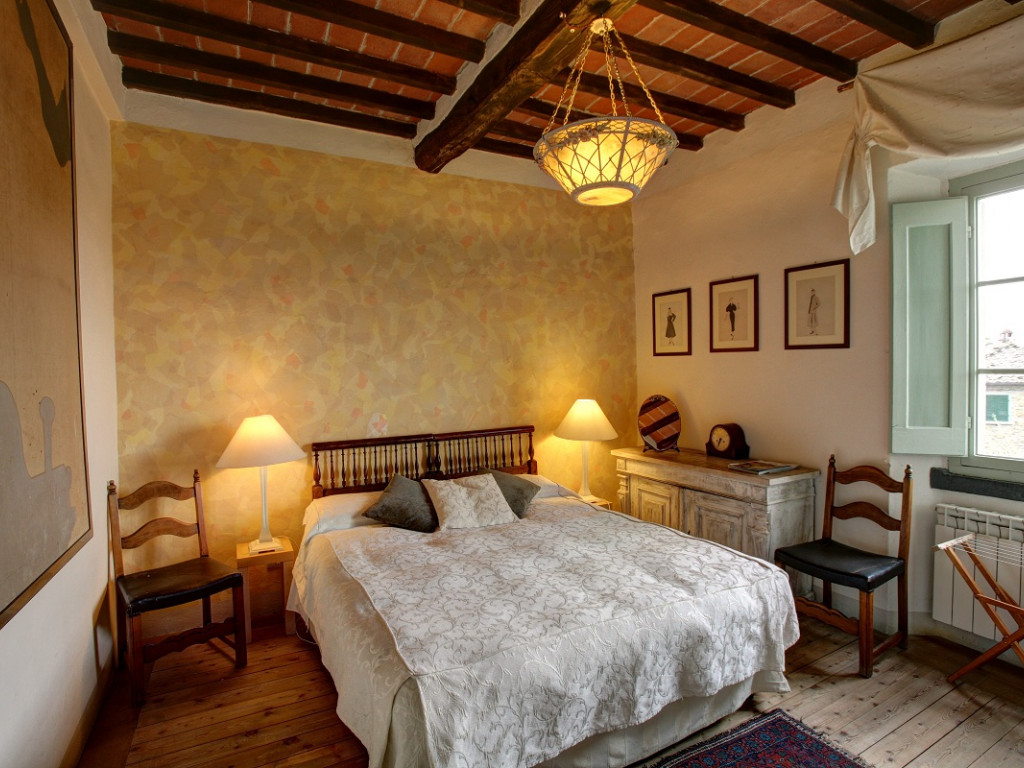 Un escalier en pierre, typique de la région de Cortona, mène au premier étage où vous entrez dans la zone de couchage. Chaque salle a été créée selon un thème différent qui les différencie les unes des autres.