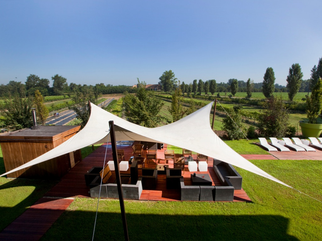 Un’ampia piscina, vi immerge totalmente nella natura attraverso una vetrata panoramica che dà verso campagne a perdita d’occhio e il recinto dei cavalli. La luce nell’acqua cambia colore creando così nuovi elementi rilassanti ed emotivi, soprattutto la sera. All’interno si inizia con il percorso Kneipp per stimolare la circolazione plantare, si prosegue con idroterapie per piacevoli massaggi, al nuoto controcorrente e ad una lama d’acqua per la cervicale.