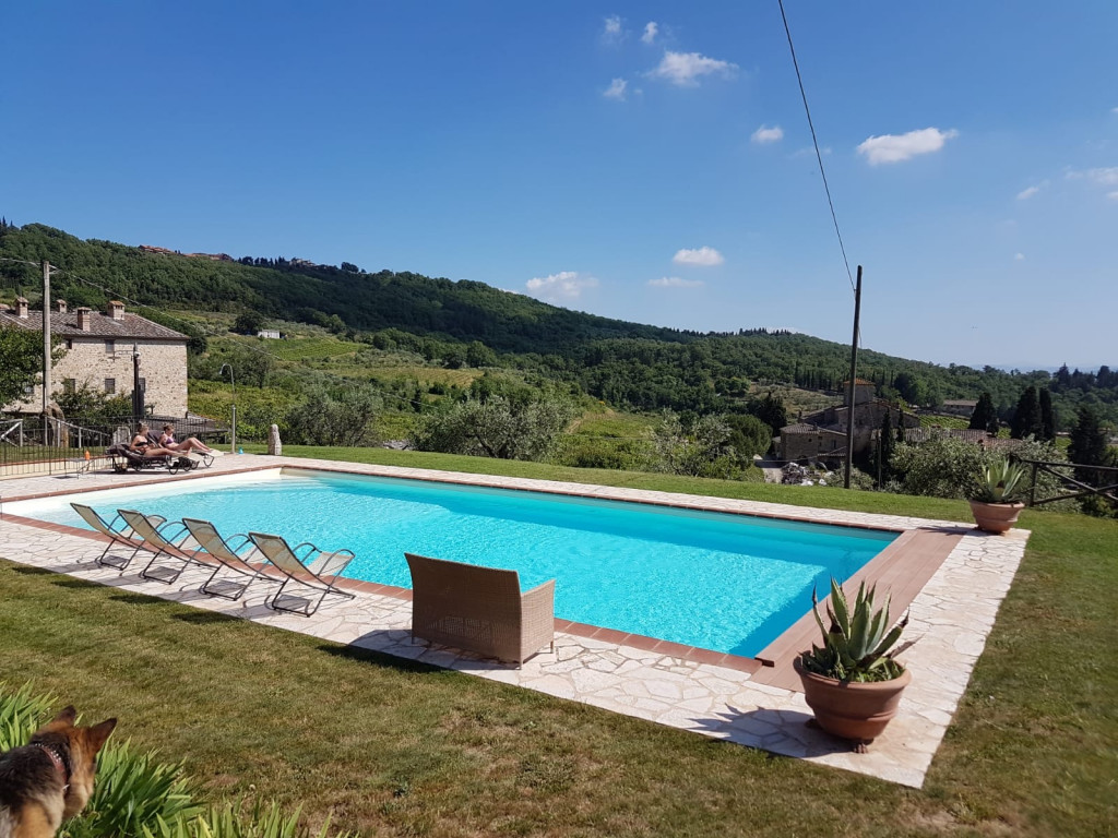 Podere circondato da boschi e vigneti con appartamenti rustici, piscina e barbecue. Ospiti apprezzano silenzio, posizione centrale nel Chianti e accoglienza familiare. Soggiorno semplice per vivere la campagna tra Siena e Firenze.