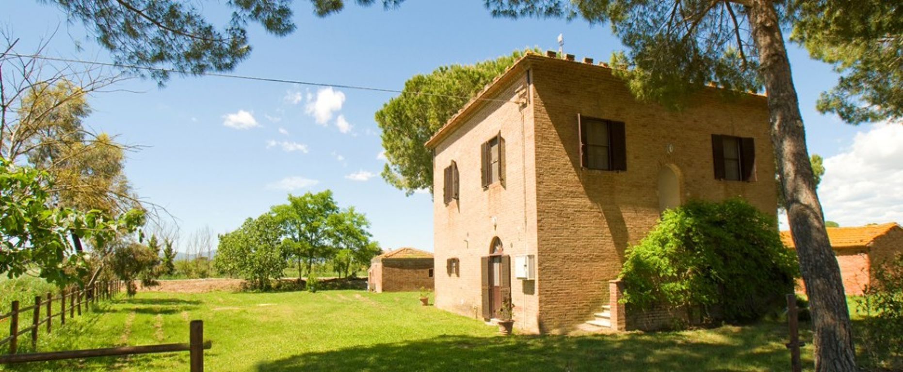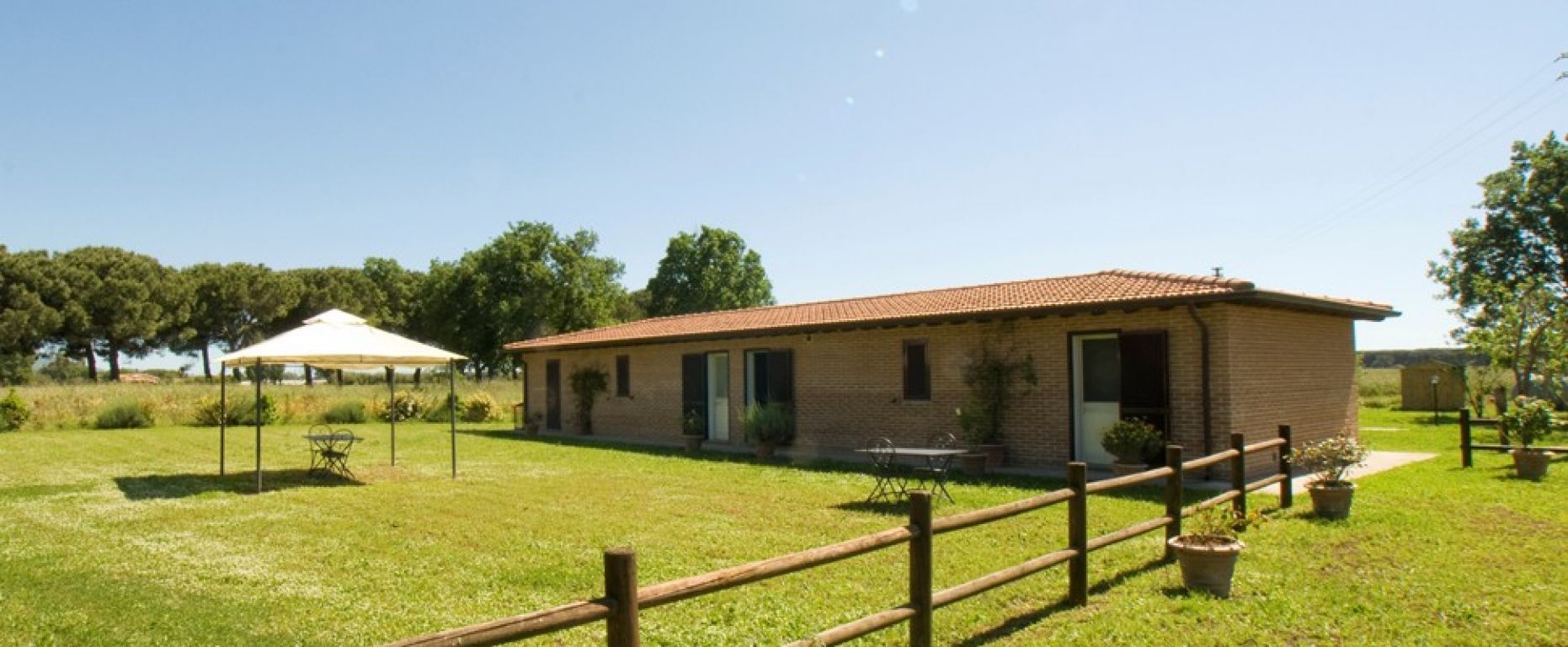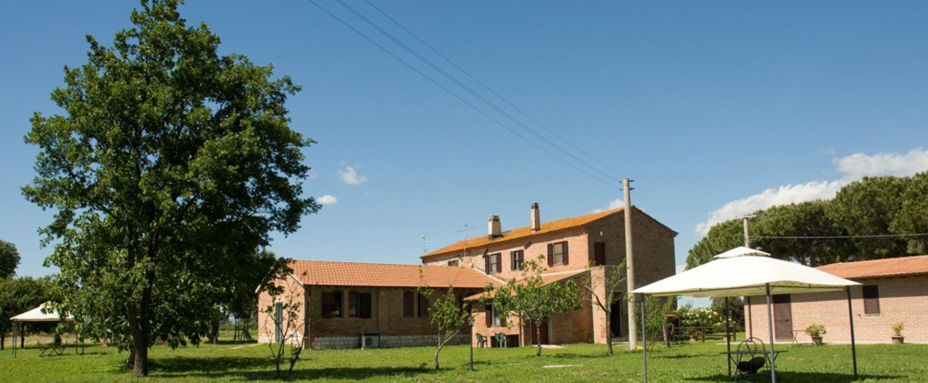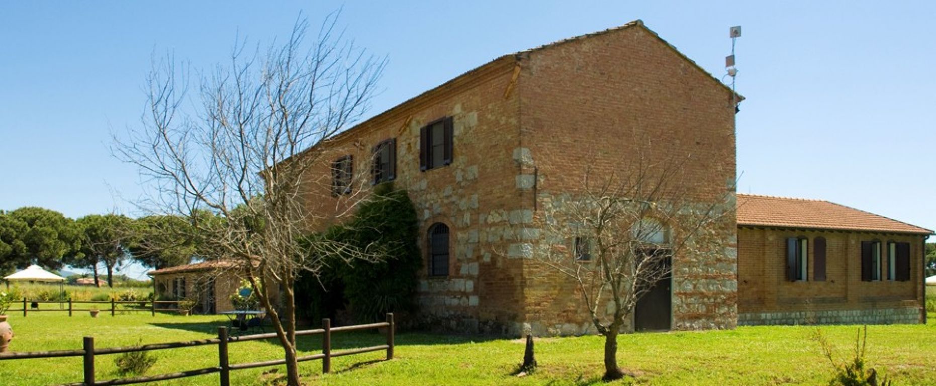 Un lungo viale di pini porta a Fattoria e a Podere Umberto, due grandi casali di pietra e mattoni ristrutturati in diversi e confortevoli appartamenti. Entrambi dotati di vasti spazi esterni con tavoli, sedie e barbecue. Distanti invece dal centro aziendale ma più vicine al mare e alle pinete costiere si trovano la Casetta, Il Glicine e Rosmarino; tre villette in mattoni, ideali per chi preferisce una maggiore indipendenza.