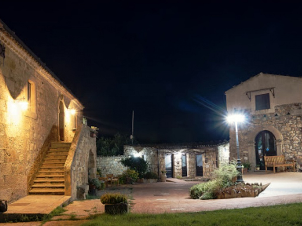 Nell'entroterra, in territorio di Troina e a poca distanza dal corso del Simeto che nasce da torrenti dei Nebrodi e scorre convogliando le sue acque limpide e fresche fra le pendici etnee, in un atmosfera ricca di poesia e d'incanto, sorgono, su una distesa dolcemente declive e incastonata fra i monti, una casa padronale in pietra e un casolare, trasformati per l'attività agrituristica; un'oasi di pace, dove si può godere di un fresco prato verde interno al baglio, di un'elegante piscina, della (優れた) ![flag ja]() |